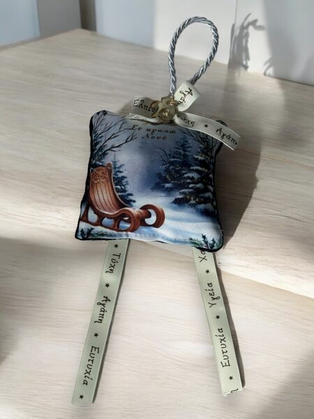 Χριστουγεννιάτικο Αρωματικό Μαξιλαράκι “Έλκυθρο στα χιόνια και με Μπλέ Βελούδο”
