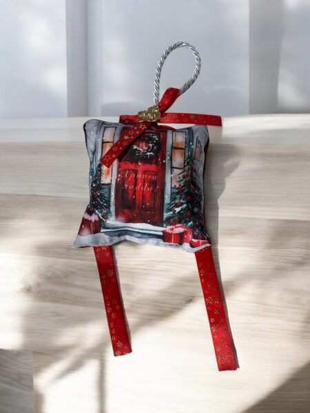 Χριστουγεννιάτικο Αρωματικό Μαξιλαράκι "Καλώς Ήρθατε στι σπιτικό μας με Κόκκινο Λούρεξ" ποσότητα