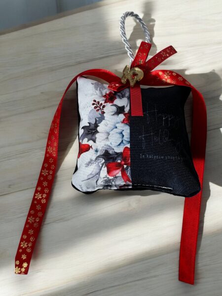 Χριστουγεννιάτικο Αρωματικό Μαξιλαράκι "Κόκκινο Φιόγκος και στολίδια με Μπλέ Βελούδο" ποσότητα