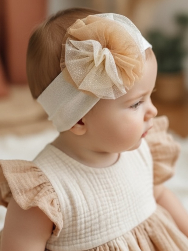 Χειροποίητη Εκρού κορδέλα μαλλιών 1000-F0023
