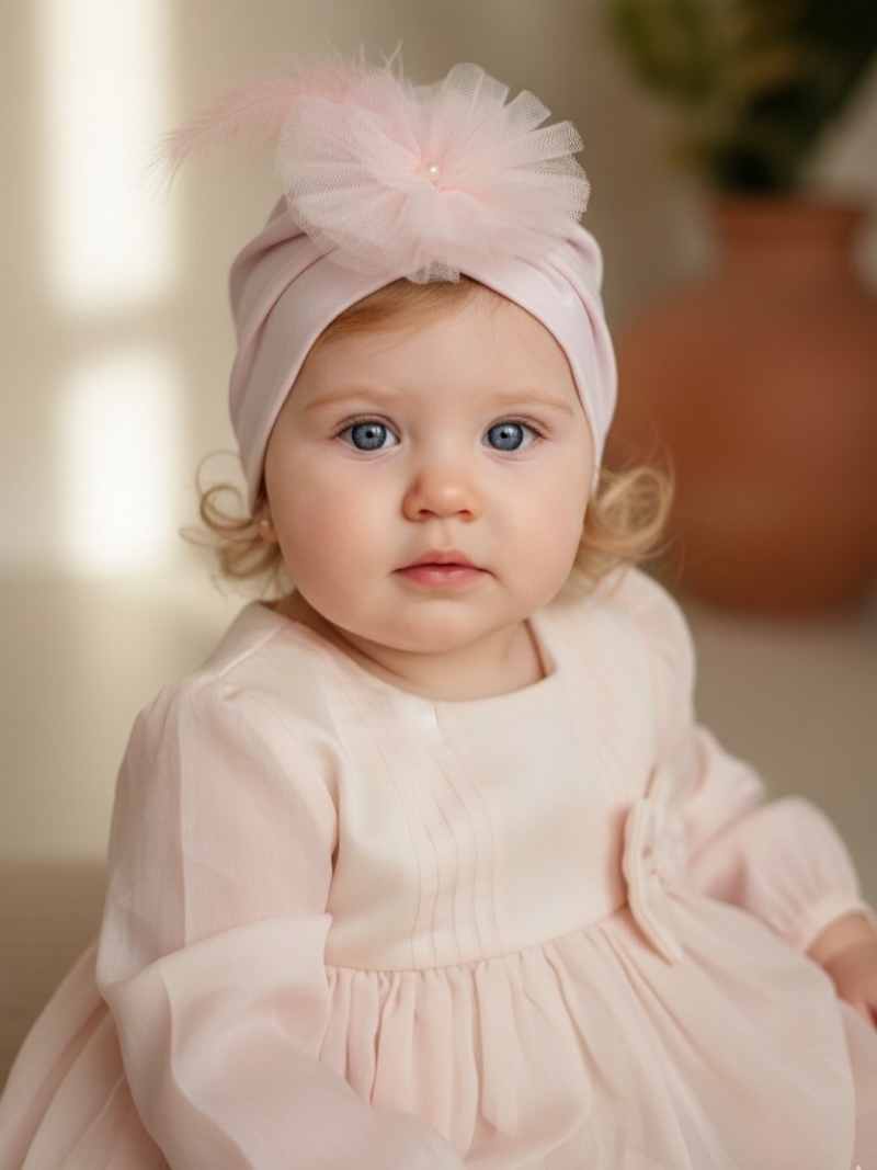 Χειροποίητο Ροζ τουρμπάνι μαλλιών 3000-F0011
