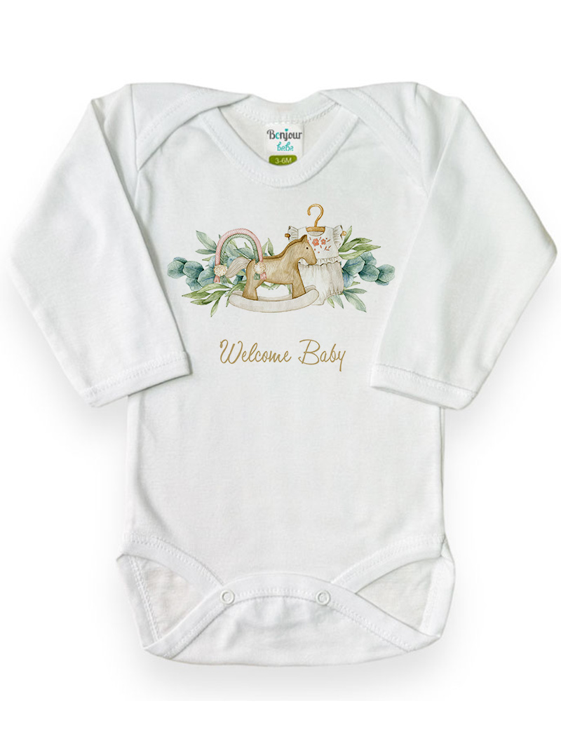 Ξύλινο Αλογάκι “Welcome Baby” (Κορμάκι)