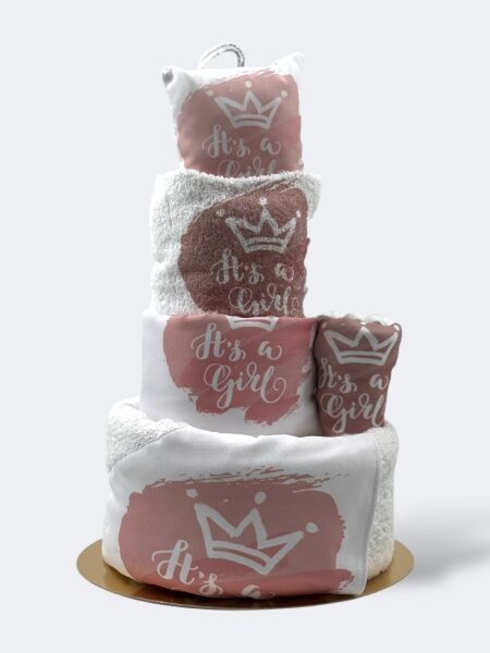 “Στέμμα It’s a Girl ” Τούρτα από πάνες-λευκά είδη και προίκα (Gold)