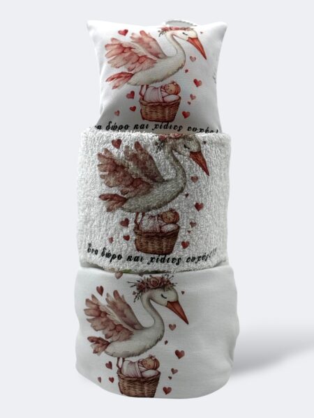 “Ρομαντικός Ροζ Πελαργός” Καπελιέρα με λευκά είδη και προίκα (Gold) ποσότητα